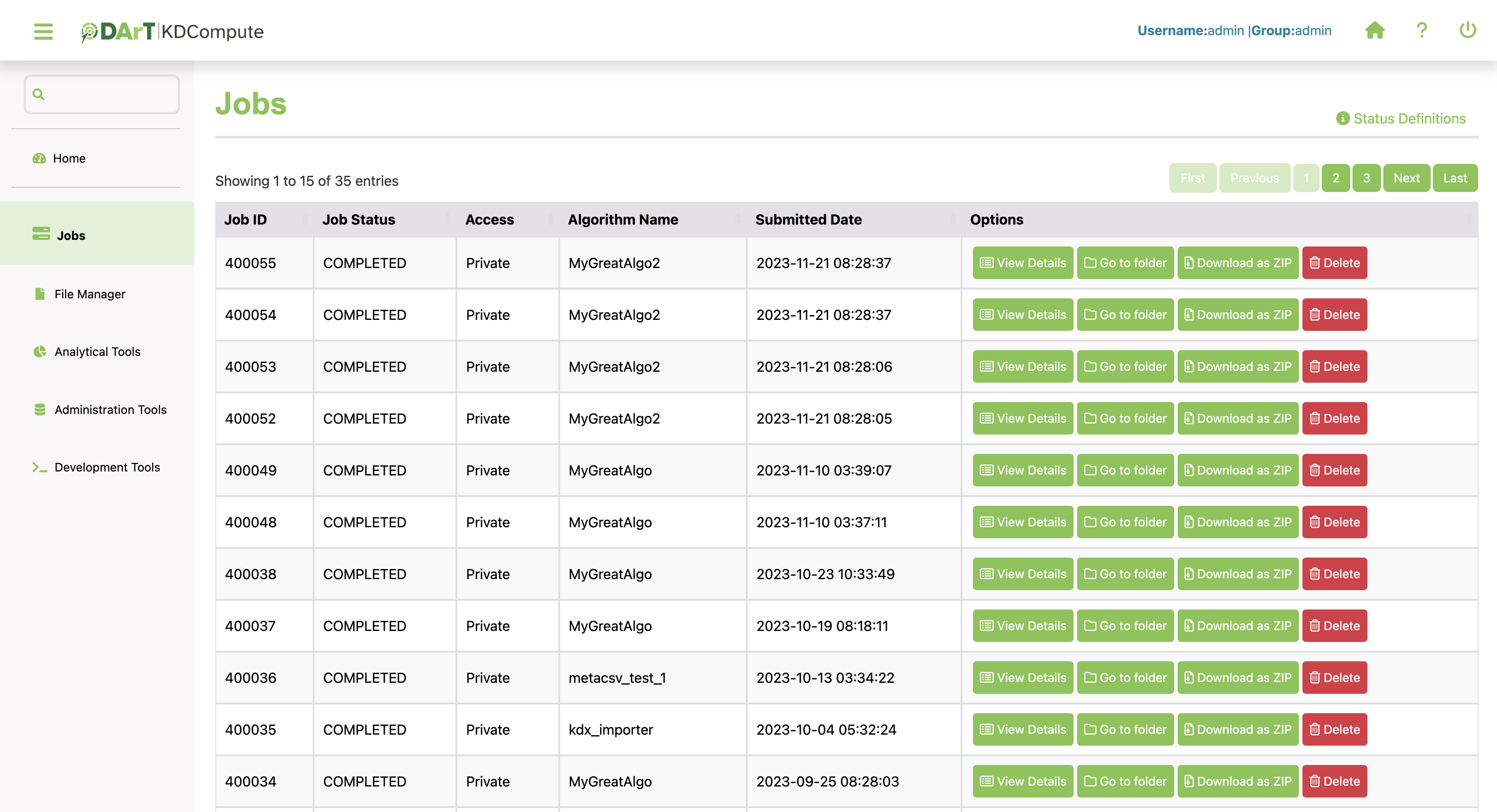 KDCompute provides an environment to control, execute and manage these algorithms for multiple users accessing the same KDDart repository.
